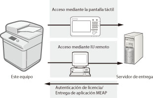 Para conocer las instrucciones acerca de cómo instalar y desinstalar aplicaciones MEAP, consulte "Instalar aplicaciones" y "Desinstalar aplicaciones".