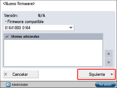 Firmware compatible: Muestra el nuevo firmware que corresponde a este equipo.