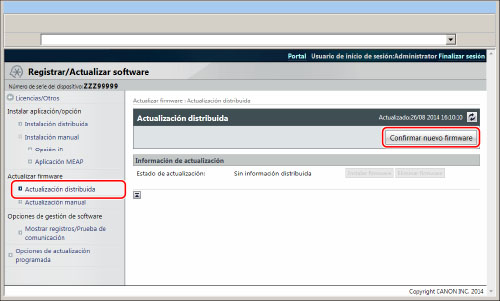 Haga clic en [Actualización distribuida] → [Confirmar nuevo firmware].