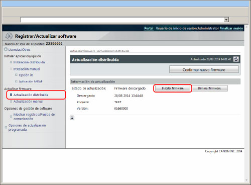 El firmware descargado con actualizaciones programadas también se puede instalar.