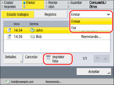 Pulse la lista desplegable → seleccione [Enviar] → pulse [Imprimir lista].