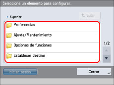 (Configuración) → [Preferencias] → [Red] → [Opciones de TCP/IP] → [Opciones de IPv4] → [Opciones de dirección IP]. |
