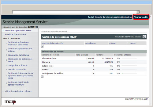 (Configuración) → [Opciones de gestión] → [Licencias/Otros] → active [IU remota].