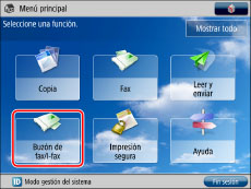 Seleccione [Buzón de fax/I-fax] desde la pantalla del Menú principal.