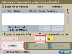 Pulse [Sí] para <Bloqueo de memoria de fax> → [Anterior].