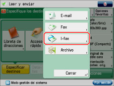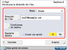 Haga clic en [Opciones de I-fax] → seleccione <Enviar vía servidor>.