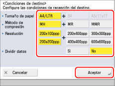 No se necesitan estas opciones al utilizar la función Fax por Intranet.