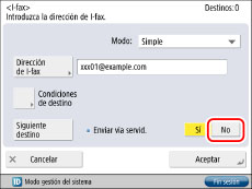 Añadido como remitente de fax. (p.ej. mfp01@canon.com)