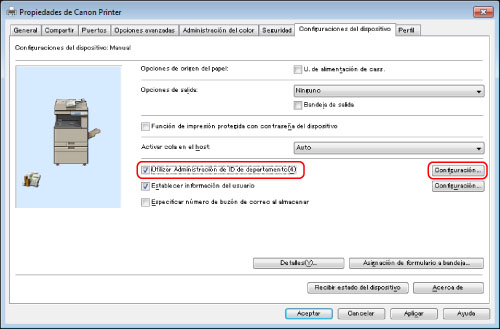 Establecer la Gestión de ID de departamentos en el controlador de la impresora