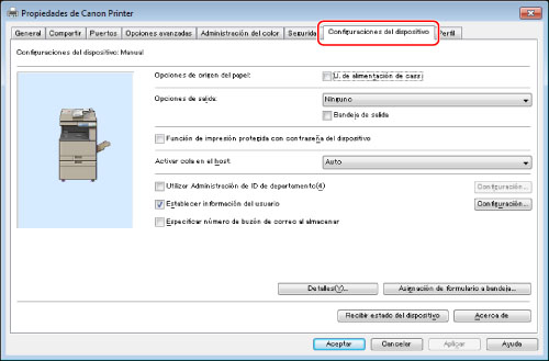 Haga clic en la ficha [Configuraciones del dispositivo].
