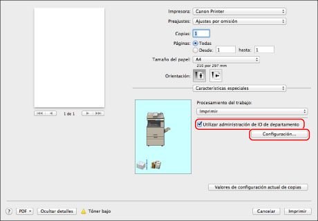 En esta sección se explica cómo configurar la Gestión de ID de departamentos en el equipo e imprimir desde el ordenador.