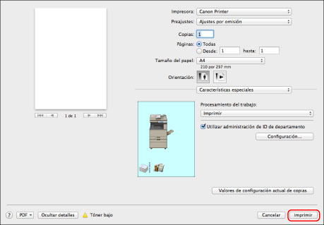 Imprima el documento utilizando el controlador de impresora con Gestión de ID de departamentos establecida.