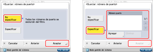 Establezca el número de puerto excluido → pulse [Aceptar] → [Aceptar].