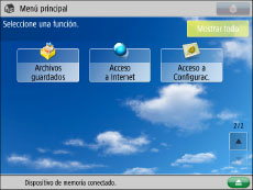 Pulse  (Configuración) → [Opciones de funciones] → [Guardar/Acceder a archivos] → [Opciones de dispositivos de memoria] → [Usar la función Lectura/Impresión].