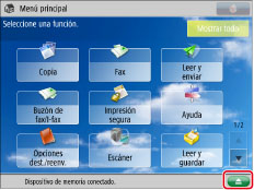 Una vez terminada la impresión, el equipo vuelve a la pantalla de selección de dispositivos de memoria.