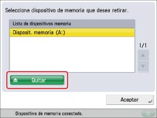 Seleccione la memoria USB que desea quitar → pulse [Quitar].