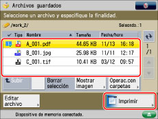 Seleccione el archivo que desee imprimir → pulse [Imprimir].
