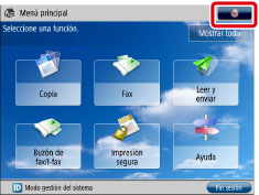 En esta sección se explica cómo establecer las tres teclas [Copia], [Leer y guardar] y [Fax] para que aparezcan en la pantalla Menú principal en este orden.