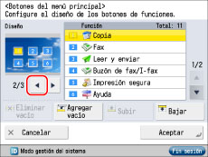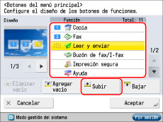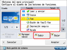 Seleccione la función que desea que se muestre en la posición <1> pulse [Subir] y muévala a la posición <1>.
