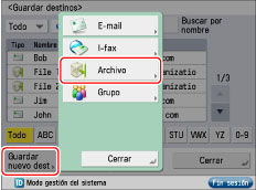 Pulse [Guardar nuevo dest.] → [Archivo].