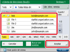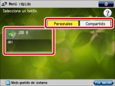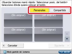 Seleccione el botón [Personales] o [Compartido] → pulse el botón guardado.