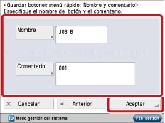 Introduzca un nombre de botón y un comentario → pulse [Aceptar].