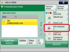 PDF con búsqueda, XPS u OOXML (Si utiliza imageRUNNER ADVANCE C3320, se necesita el Kit de Envío Universal Color.)