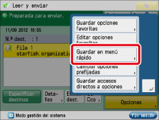 (Inicio), comienza el envío; sin embargo, esta sección pasa al procedimiento para guardar las series de funciones mencionadas en el menú rápido.