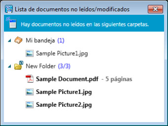 La ventana de notificación de documentos no leídos/actualizados aparece.