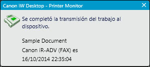 Aparece durante el período transcurrido desde el comienzo de la puesta en cola realizada por el gestor de colas de Windows hasta que concluye un trabajo de envío de fax a imageRUNNER ADVANCE.
