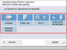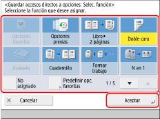 Seleccione el modo [Opciones] que desea asignar como acceso directo → pulse [Aceptar].