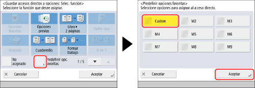 Pulse [Predefinir opc. favoritas] → seleccione las opciones favoritas asignadas → pulse [Aceptar].