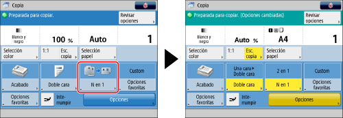 Las opciones se pueden recuperar sin que aparezca una ventana de confirmación desde la pantalla de funciones básicas de copia.