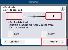 Si cambia la densidad en [Opciones], es posible que el ajuste de la densidad durante la copia no tenga ningún efecto en el resultado final.