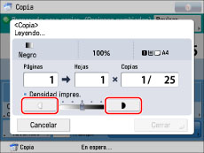 Pulse o para ajustar la densidad del original → pulse [Aceptar] → [Cerrar].