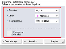 Si establece dos de los modos [Numerar páginas], [Numerar juegos cop.] o [Imprimir fecha] para imprimir en la misma posición, aparece un mensaje de confirmación al pulsar