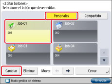 Para conocer las instrucciones de introducción del nombre y el comentario del botón, consulte "Guardar los botones personales y los botones compartidos".