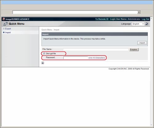 Puede usar los archivos importados de los botones personales y botones compartidos entre los mismos modelos (imageRUNNER ADVANCE C3330i/C3325i/C3320/C3320i). No obstante, es posible que no pueda utilizar algunos botones importados dependiendo del producto opcional instalado y del entorno.