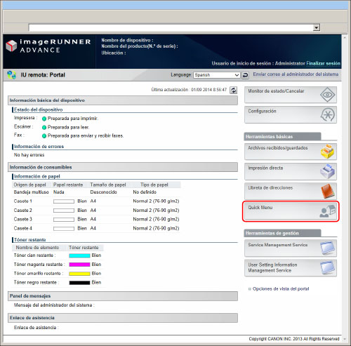 Para usar la IU remota, active [IU remota] en [Opciones de gestión] (Configuración). (Consulte "IU remota".)