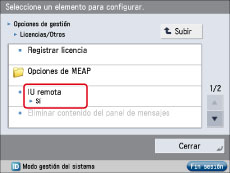 Al establecer [IU remota] en 'Sí', podrá abrir un puerto necesario. No obstante, se recomienda que se establezca en 'No' si no se utiliza un puerto. Si deja el puerto abierto, un usuario no autorizado podrá acceder al equipo.