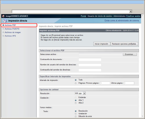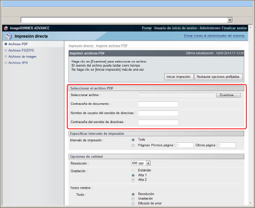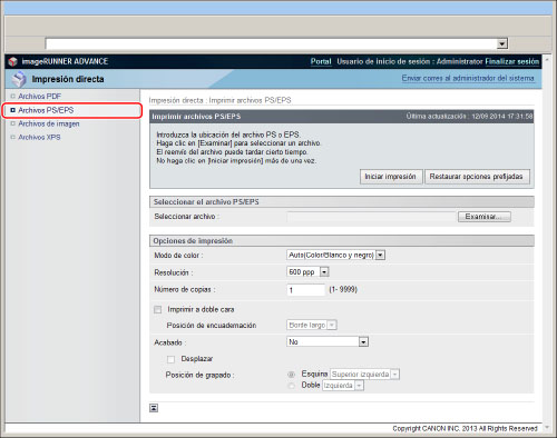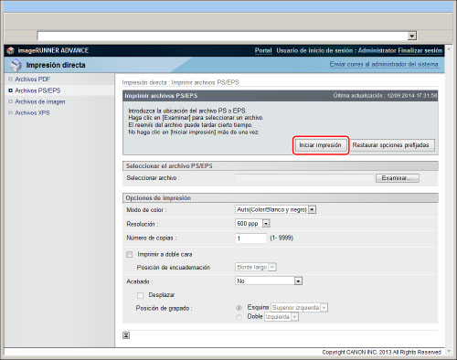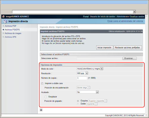 Si utiliza imageRUNNER ADVANCE C3320, se necesita el Kit de Impresora PS o Kit de Impresión Directa (para PDF/XPS) opcional para imprimir directamente archivos PDF sin abrirlos.