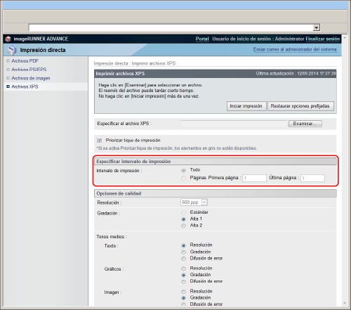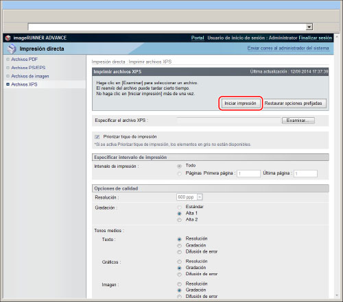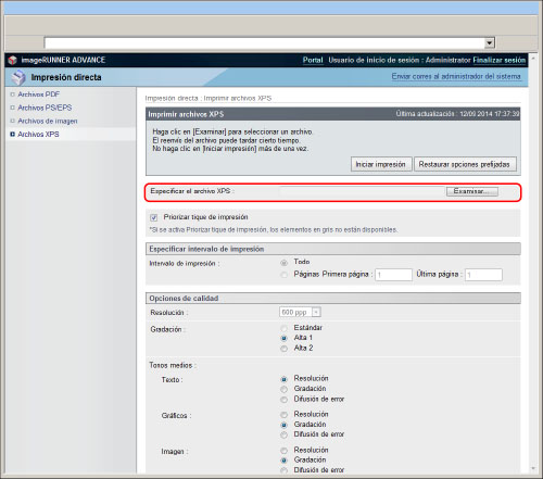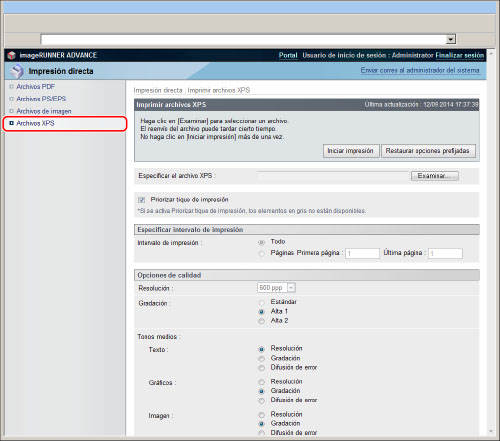 Si utiliza imageRUNNER ADVANCE C3320, se necesita el Kit de Impresión Directa (para PDF/XPS) opcional para imprimir directamente archivos XPS sin abrirlos.