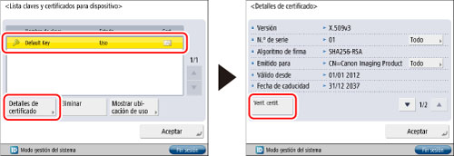 La Device Signature Key es un par de claves necesario para la firma de un dispositivo. Para más información, consulte "Establecer/confirmar un par de claves y un certificado de dispositivo".
