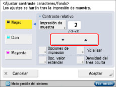 Cuando cambie el área de ajuste en la impresión de muestra para el contraste relativo, especifique las opciones para [Opc. valor estándar].