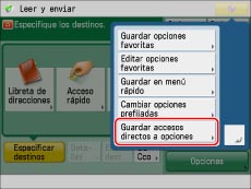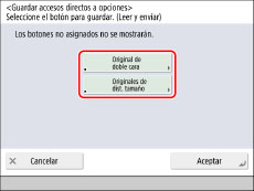Seleccione el modo [Opciones] que desea asignar como acceso directo → pulse [Aceptar].
