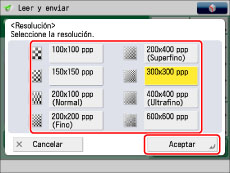 Si selecciona [OOXML] como formato de archivo, sólo podrá enviar en [300x300 ppp].