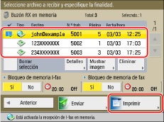 Los archivos guardados en el buzón de recepción en memoria se eliminan automáticamente después de imprimirlos.