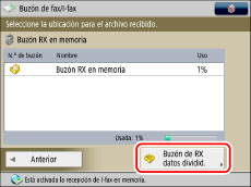 Pulse [Buzón de fax/I-fax] → [Buzón RX en memoria].
