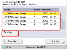 Seleccione los datos divididos que desee comprobar → pulse [Detalles].