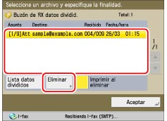 Los datos divididos se eliminan mientras el equipo los recibe. También puede configurar el equipo para que imprima un archivo que se está eliminando.
